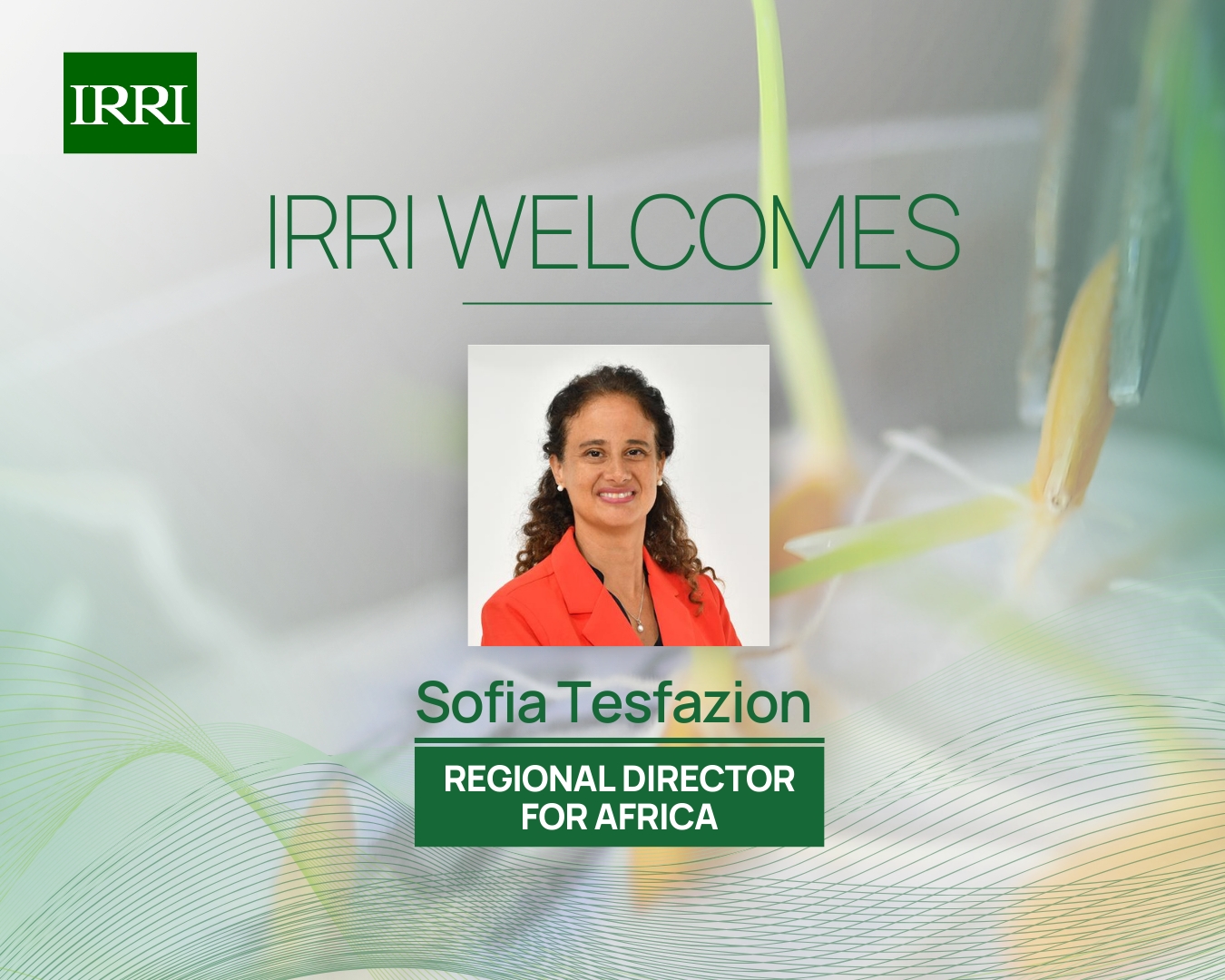 LOS BAÑOS, Philippines (16 December 2025) ~ The International Rice Research Institute (IRRI) is pleased to announce the appointment of Ms. Sofia Tesfazion as its new Regional Director for Africa. In this critical role, she will focus on expanding IRRI’s strategic partnerships and mobilizing resources in the region to advance the institute’s mission of reducing rural poverty, enhancing climate resilience, promoting environmental sustainability, and improving nutrition and health outcomes.