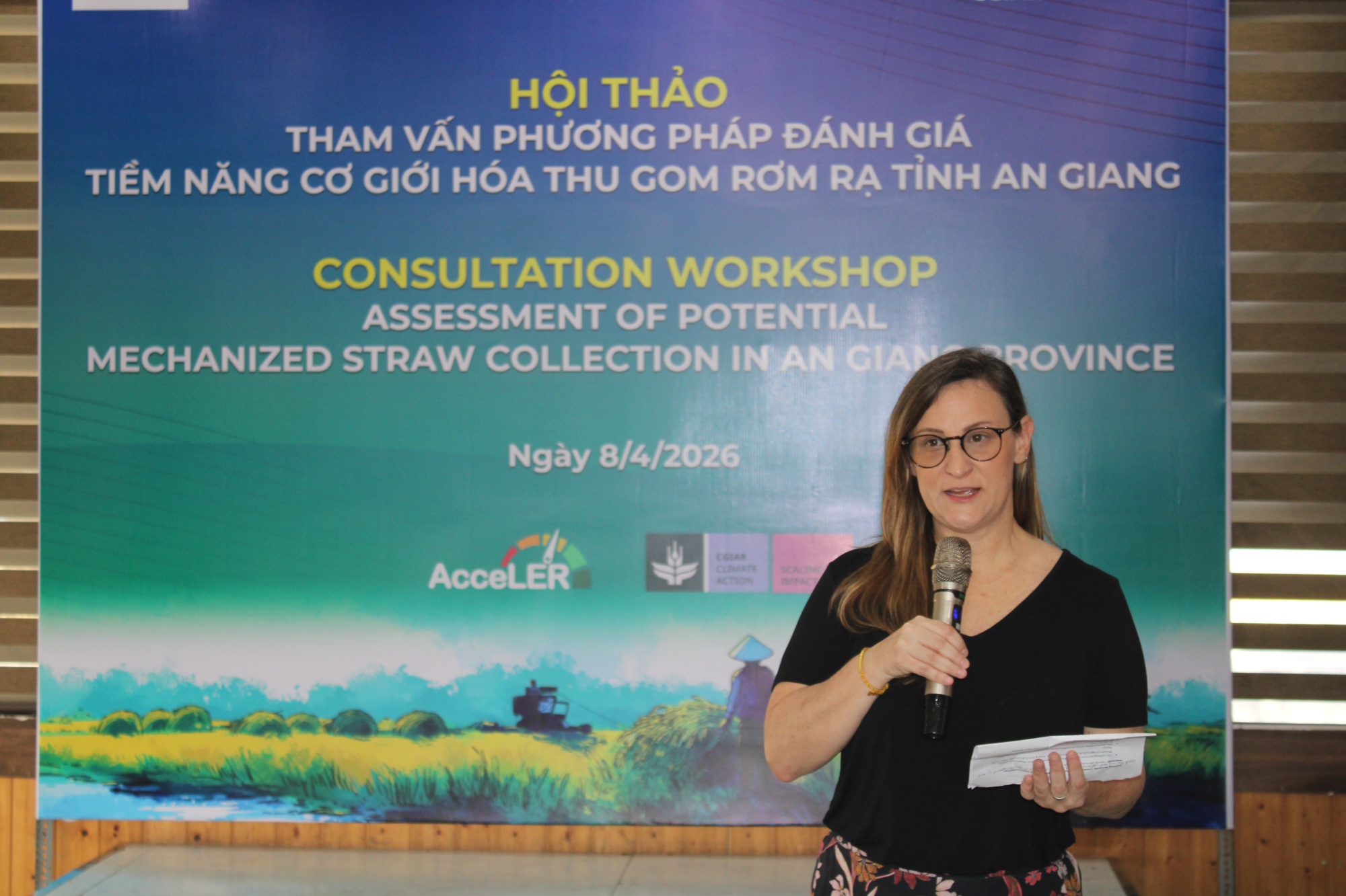 During the opening remarks, Dr. Katherine Nelson, climate change specialist at IRRI scientist, highlighted the scale of the task. Vietnam generates approximately 45–50 million tons of rice straw annually, with nearly half originating in the Mekong Delta. "To address these challenges and meet our climate commitments, we must view straw as a resource rather than a waste product," Dr. Nelson emphasized. "Moving toward mechanized collection is a key solution for Vietnam."