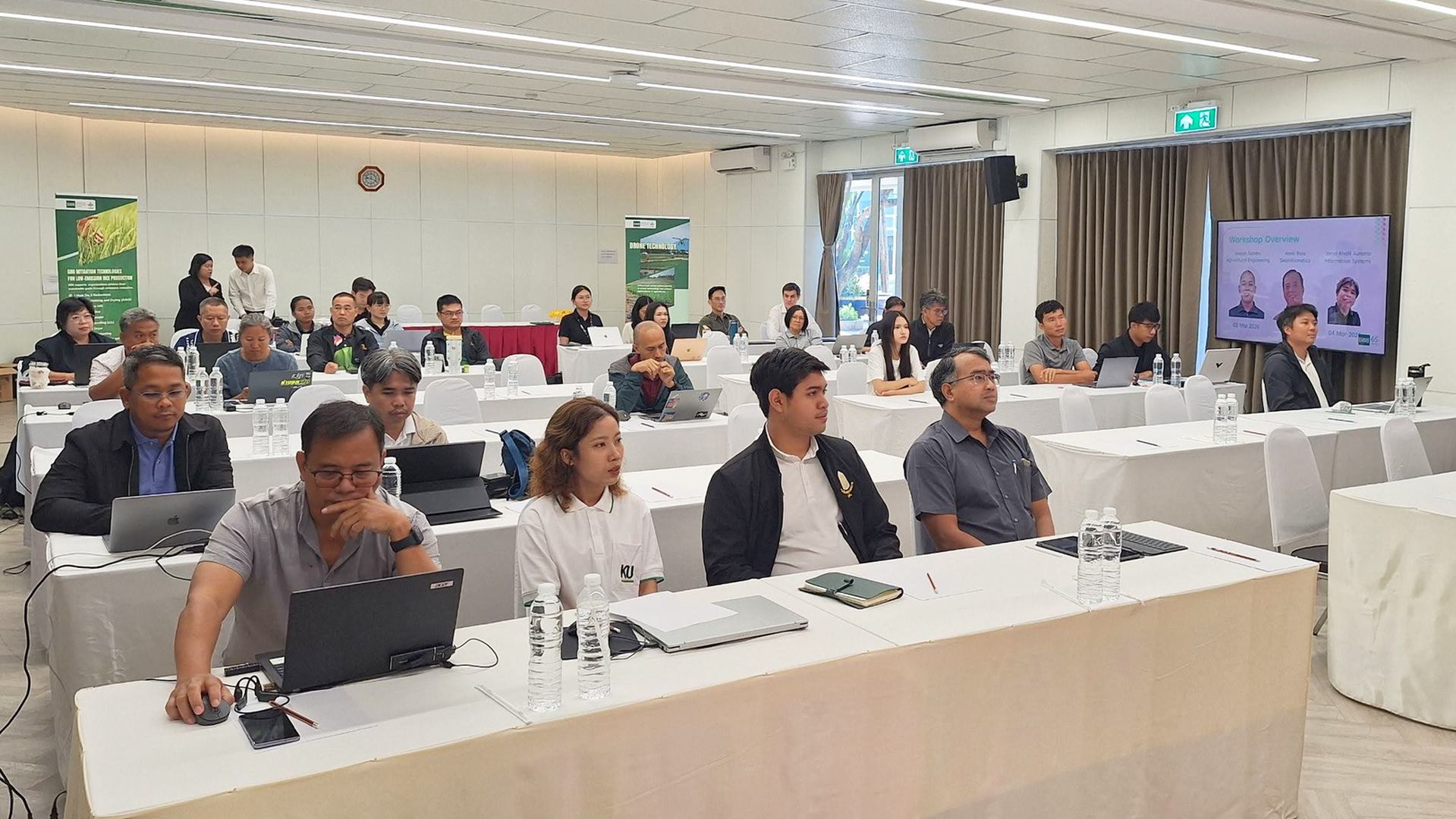 That shift in perception came through between 24 February and 4 March 2026 when the International Rice Research Institute (IRRI) organized a consecutive workshop series for Thailand’s Rice Department and Kasetsart University respectively on drone-based remote-sensing for low-emission rice and climate-smart agriculture. The multi-day workshop series was an effort under the Thai Rice: Strengthening Climate-Smart Rice Farming (Thai Rice GCF) by the three institutions, linking sessions across Thailand Rice Science Institute in Suphan Buri and Rice Science Center, Kasetsart University in Nakhon Pathom. Thai Rice GCF supports Thailand’s transition towards climate-smart agriculture and low-emission rice farming through the adoption and scaling up of climate-smart technologies and practices.