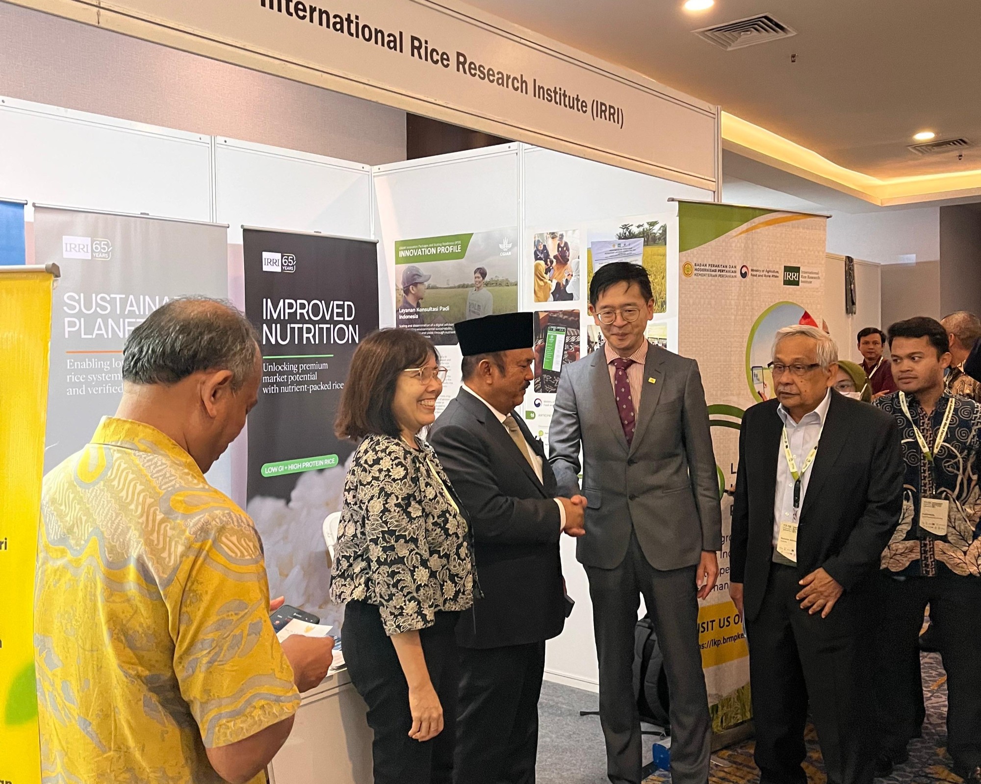 Indonesia’s Minister of National Development Planning Prof. Dr. Ir. Rachmat Pambudi, M.S. visits the IRRI booth.