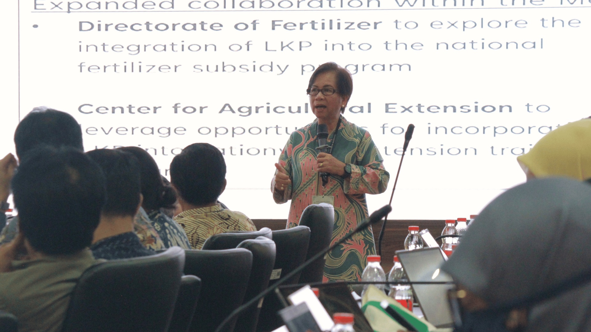 The project concluded with a two-day completion workshop in Jakarta, celebrating key achievements and mapping the next steps for national integration of LKP into government programs. The sessions featured a mini Innovation and Scaling Readiness (IPSR) workshop, where participants from BRMP, the Directorate of Fertilizer, the Center for Agricultural Extension, and IRRI reflected on the future scaling of LKP. In breakout sessions, they shared their vision for scaling, identified anticipated challenges such as farmer behavior change and institutional coordination, and proposed solutions including integration with the Cyber Extension platform, stronger policy alignment, and continued capacity building through demonstration plots.